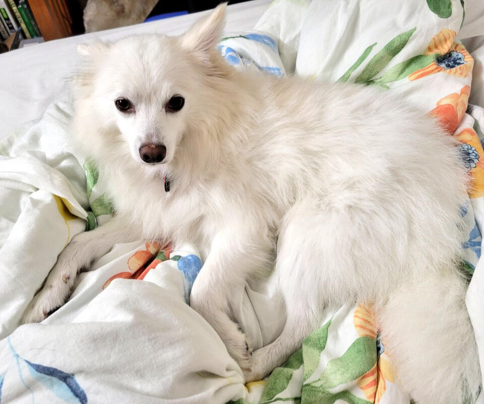 - My dog's name is Scottie, she is named after the Pokémon Whimsicott, she is an American Eskimo, and she is very cute